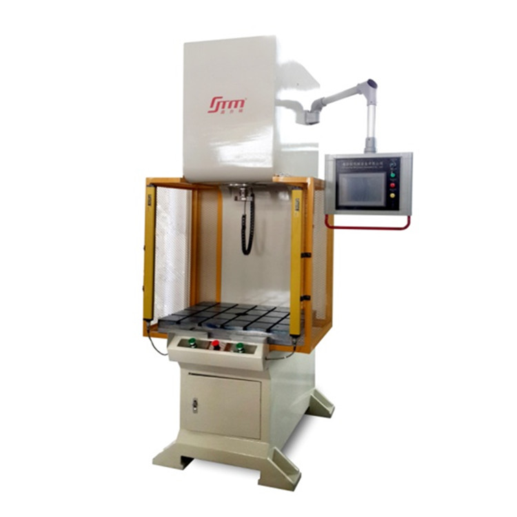 設(shè)備通過伺服液壓泵組來驅(qū)動油缸進行上下壓裝作業(yè),組建的數(shù)控系統(tǒng)人機對話可實現(xiàn)根據(jù)客戶壓裝產(chǎn)品在組態(tài)觸摸屏中對產(chǎn)品的壓裝參數(shù)設(shè)定,能夠直觀查看產(chǎn)品的壓裝數(shù)據(jù),同時可以對壓裝產(chǎn)品進行在線壓裝檢測功能,設(shè)備具有快速下壓、壓裝、保壓與返回多段壓裝速度控制,使產(chǎn)品在壓裝過程中能有效的保證了產(chǎn)品壓裝的壓力精度與位移精度;